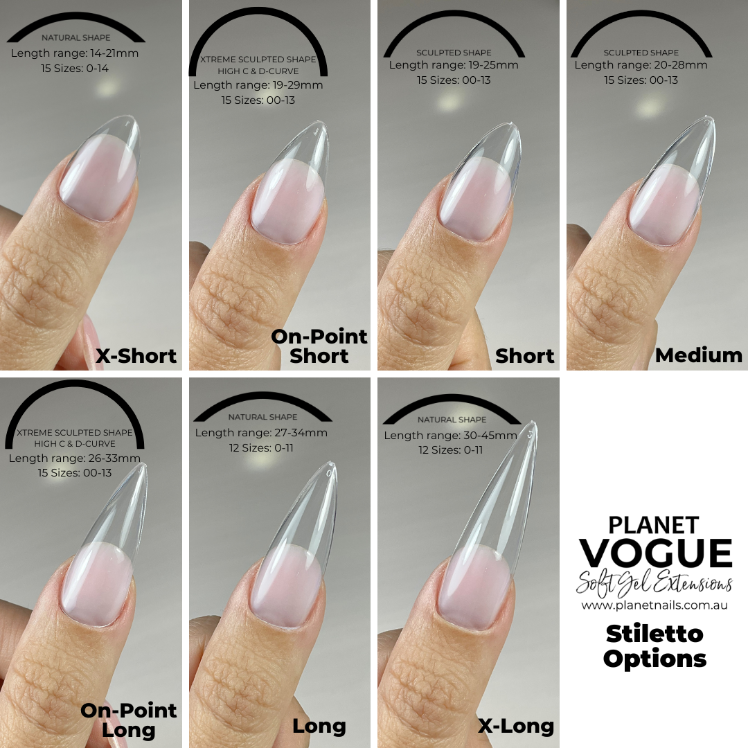 Please note: Due to human error, some individual size bags may be mislabelled. Please refer to the actual number on the tip itself and not the number on the bag. Please refer to the comparison pictures of your chosen shape/length as well as the measurement chart before purchasing to ensure you are happy with your choice. Any descriptive name allocated to a chosen shape/length is based on where the shape/length fits into the Planet Vogue range and may not conform to an individual’s idea of the name or compare to another brands' shape/length. When comparing lengths please ensure you are comparing like for like i.e. x-short square with another square shape as some shapes will be longer across the board of lengths. We try and provide as much information on our products as possible to make choosing the correct shape/length for as informative as possible.
