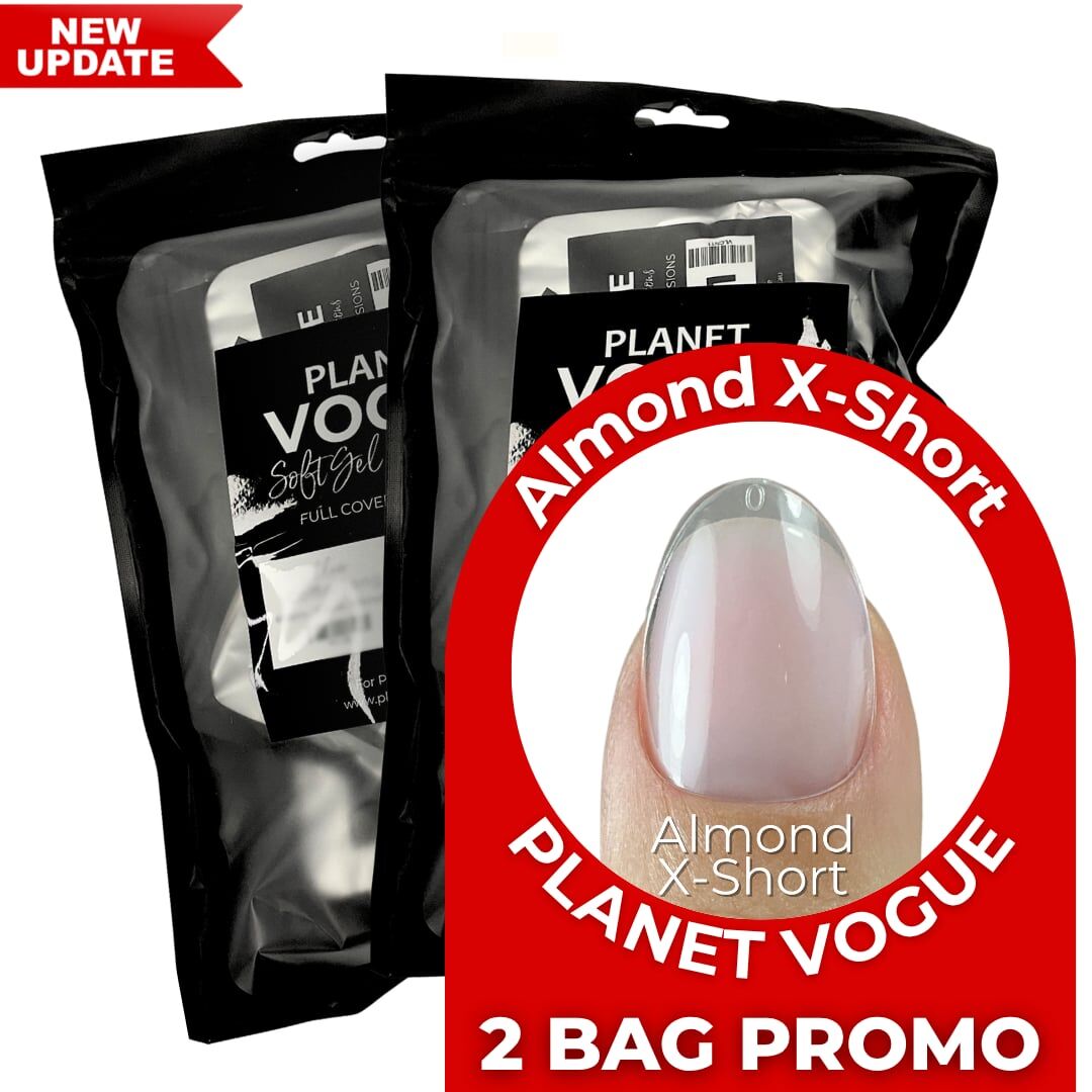 2 BAG SPECIAL. Planet Vogue Almond X-Short Soft Gel Extensions - 600 Pack - NEW UPDATE