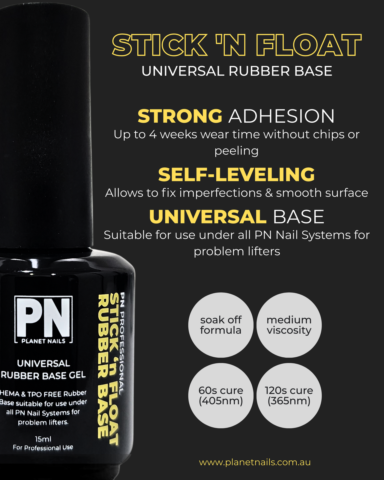 It's a Soak-off Universal Rubber Base specially formulated to work under all PN Systems for clients struggling with lifting. Great option to use instead of Base Coat with Planet Gel Polish for long lasting Gel Polish manicure, designed to give extra strength to flaky, brittle, thin or splitting nails.