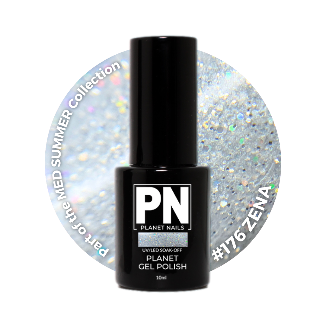 Planet Gel Polish – P176 ZENA (Silver/Shimmer/Glitter) – HEMA Free UV/LED Soak Off, 15ml