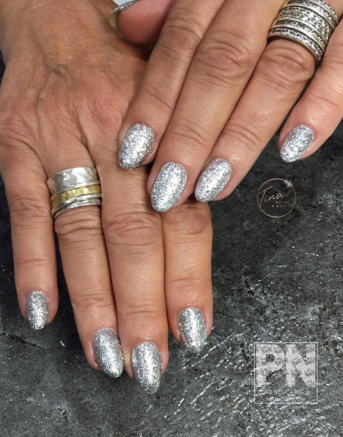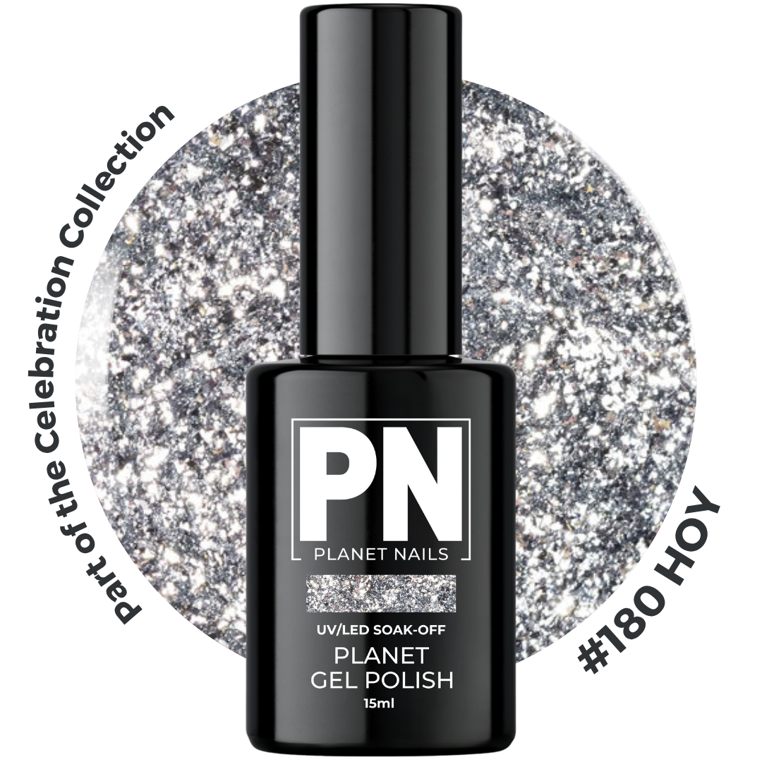 **NEW SIZE 15ml** Gel Polish – P180 HOY (Silver/Shimmer/Glitter) – HEMA Free UV/LED Soak Off