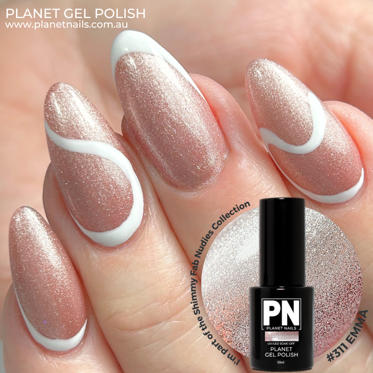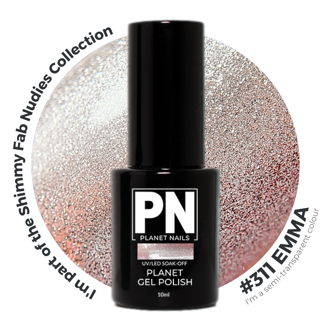 Planet Gel Polish – P311 EMMA (Gold/Shimmer/Glitter) – HEMA Free UV/LED Soak Off, 15ml