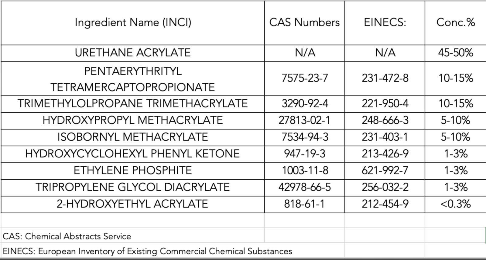 Dual Cure: 60 seconds in 405nm LED or 120 seconds in 365nm UV lamp
